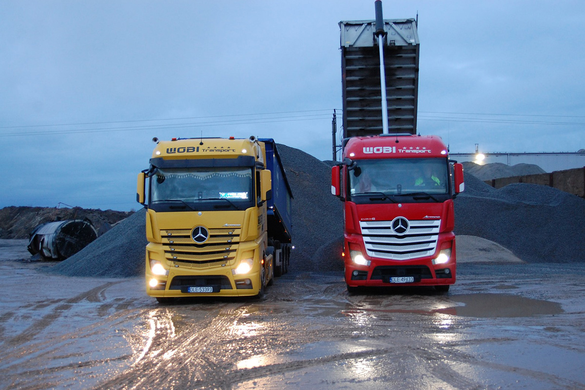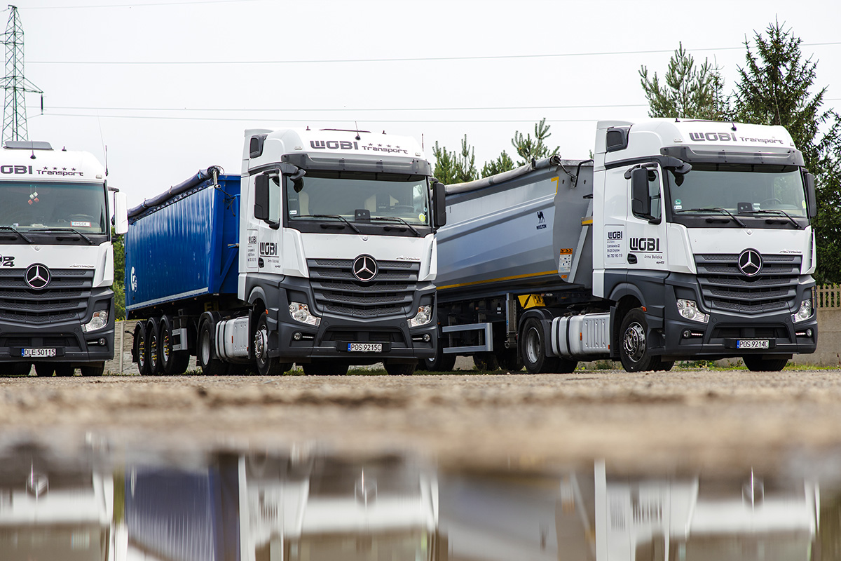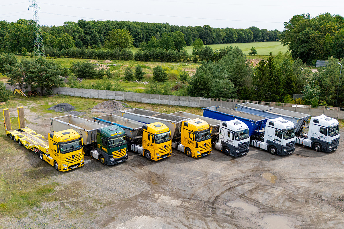 Nasza flota składa się z aut Mercedes-Benz o ładowności 26 ton. Nasza flota przystosowana jest do profesjonalnego przewozu wszelkiego rodzaju materiałów sypkich, takich jak piasek, żwir, węgiel, zboża oraz inne surowce a także ładunków o nietypowych wymiarach i dużej masie, takich jak maszyny budowlane, elementy konstrukcyjne czy urządzenia przemysłowe.